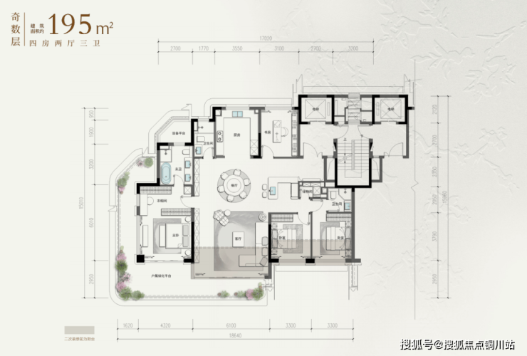 区别于功能单一的传统阳台,项目还额外附赠挑高约6.5米的奢阔庭院露台,垂直空间实现多维拓展与使用潜力升级,且露台享受不计容政策红利,无需承担额外的面积成本。通过这些设计,凤栖云庐四代宅兑现了远超传统住宅的空间利用率。