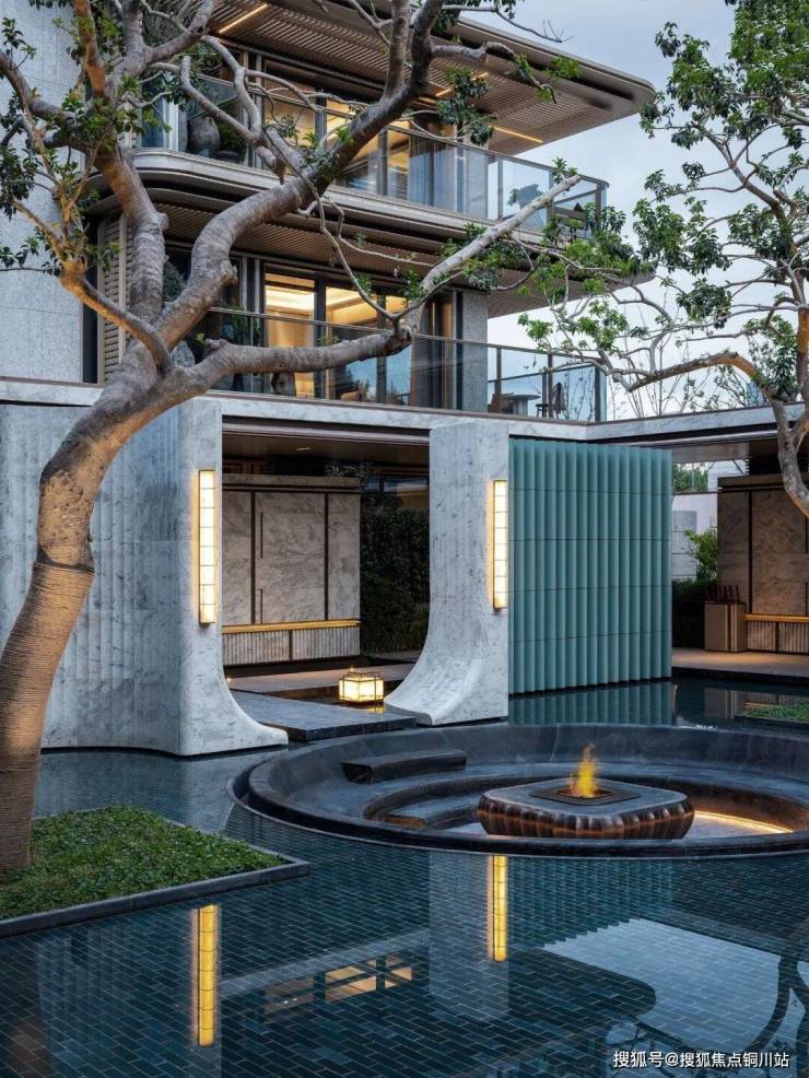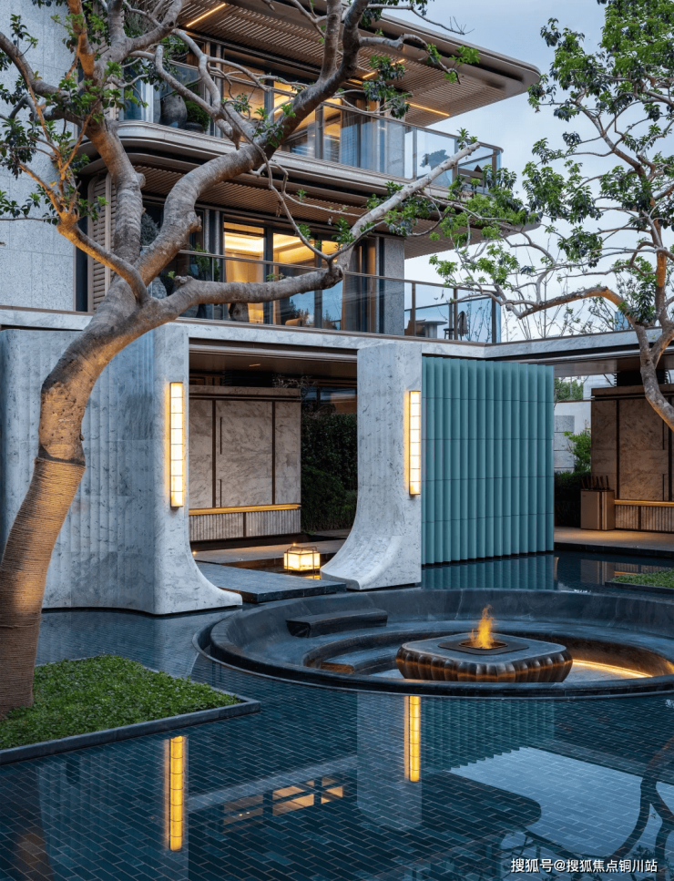 拱廊与室外灰空间接景观水院,结合礼序归家水庭与游廊式路径,共同构成“四进庭院”的归家体系。通过精心组织路径与尺度转换,营造出小而精、序列丰富的场景体验。