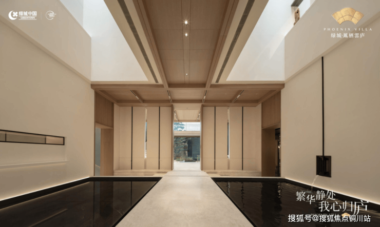 倘若从地下一层归家,经由地库光厅就来到了哲学水厅。在这里,两侧是深邃的水池,光线透过顶部的采光井倾洒而下,听着由一侧墙面而来的潺潺流水声,身心在这一刻完全沉静。