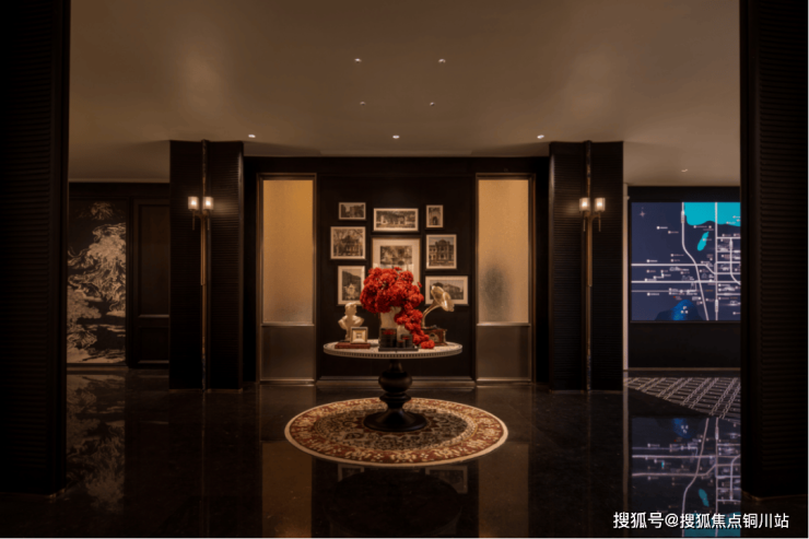 售楼处室内以“黑白海派法式”为基调,紧扣“摩登湖山诗”理念: