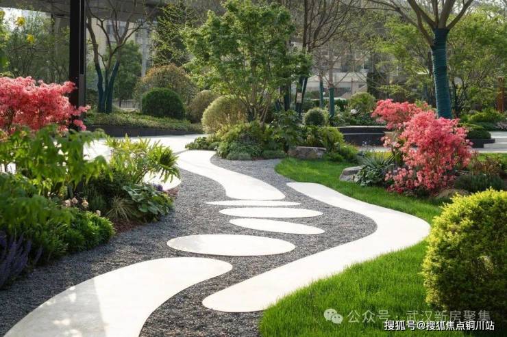 项目北靠洪山,南临南湖,地势北高南低,占据大武昌中心地利。项目结合地势高差,在约7000㎡中央公园打造上,以“叠山”、“理水”、“茂林”、“修花”四大维度,诠释观山听泉的园林意境。