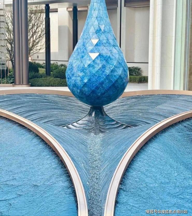 你看社区大门宽约46米,高约9米,灵感源自“京杭大运河博物馆”设计,顶部大约2280块水晶瓦精心雕琢,内部超300块金鳞铝板手工拼接,还有层叠水景,整个一看就贵气。