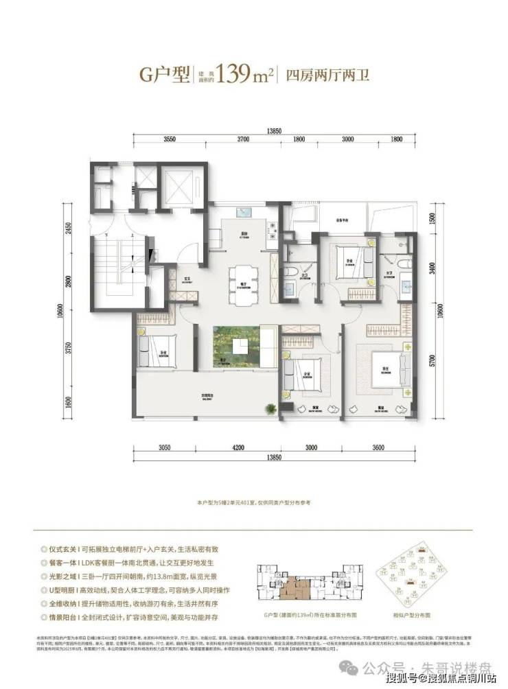106㎡实现四开间朝南,南向面宽达12.5米。