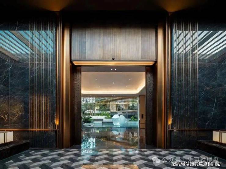 始于气派的仪式感:一道长达52米、由奢石、华盖、汉白玉雕塑与紫薇古树构成的门庭,百米外已气势夺人。但这仅是序章。归家路径被设计成一场探索:绕过景墙,沿洄游空间漫步,经过悬瀑水幕,最终抵达一扇厚重的紫铜大门。