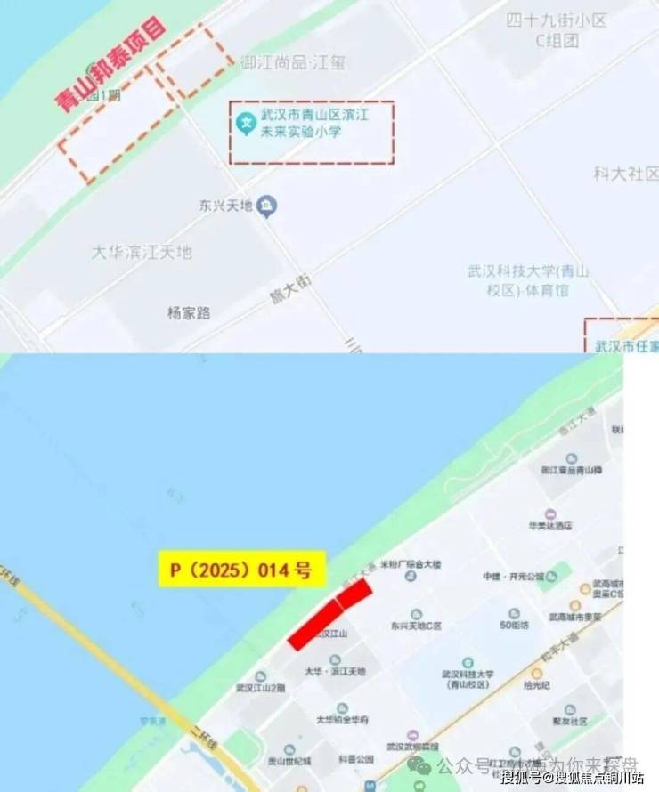 该地块位于武汉市青山区临江大道与三弓路交汇处,该项目是在2025年3月28日,邦泰经过44轮激烈竞价、溢价34.29%。摘得P(2025)014号地块,成交总价约84200万元,成交楼面价约11455.78元/㎡。住宅、公园与绿地用地,土地面积34350㎡,建筑面积73500㎡。