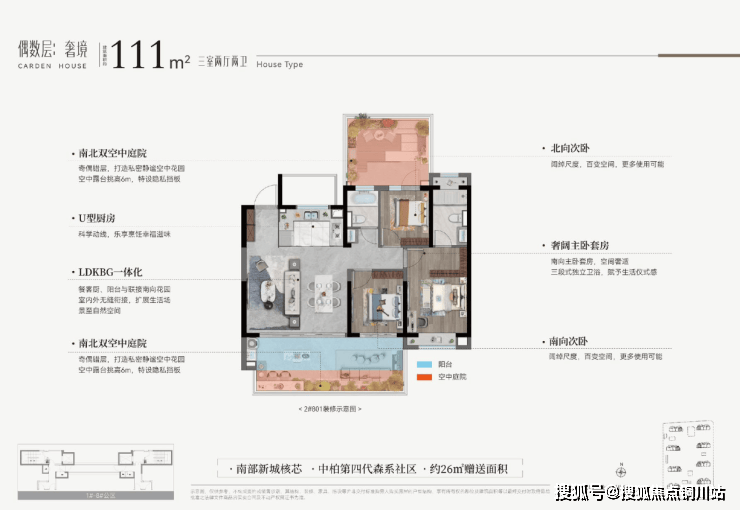 :8栋26层住宅,总户数808户,车位配比1:1.35。
