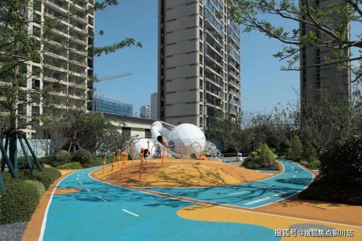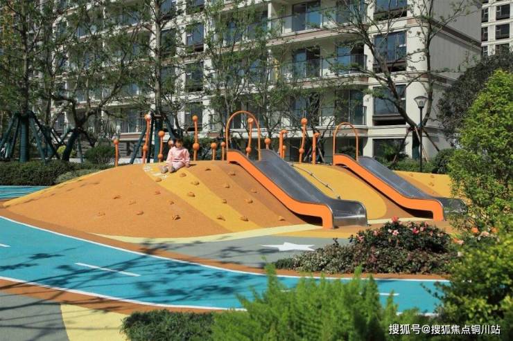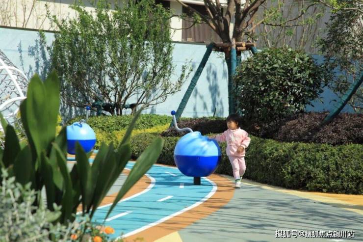 五彩斑斓的“星际探险”乐园利用地形高差构筑起大大小小的游乐设施,以蓝色塑胶场地为基底,结合星际主题展开探险之旅。