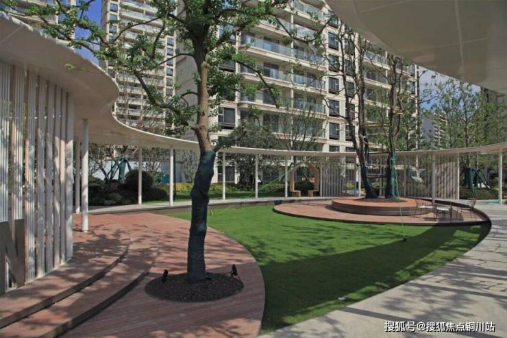 无锡山河九里二期大树聚场,打破年龄界限、场地界限、功能界限,景观空间把全龄人群功能活动联动融合,形成社区的活力最热点。