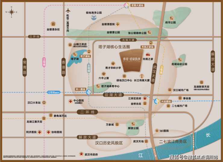 伟星·星宸玖序所在的塔子湖板块,向南无缝衔接汉口内环,向东与二七滨江国际商务区直线贯通,项目东侧的武汉大道还直接串联起了天河机场、东湖风景区等城市地标。