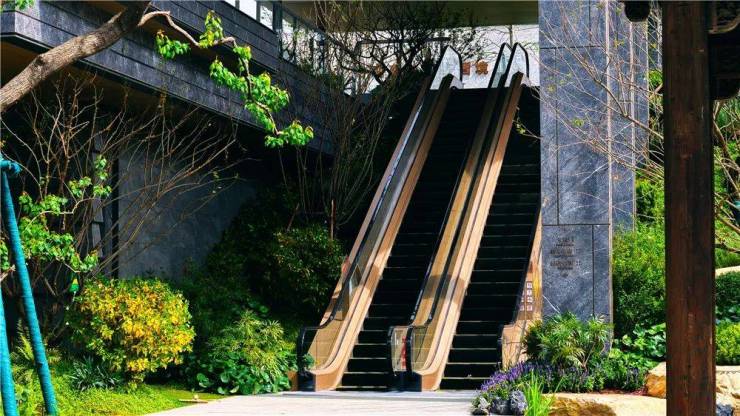 园林内部有一部扶手电梯和一部直梯连接“下沉庭院”和“一层平台”。