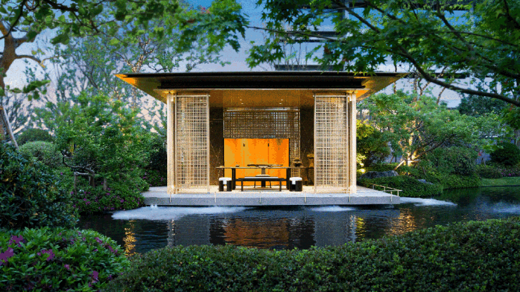 「精粹东方、大雅为赋」,两“赋”立足东方美学,却各有不同。「保利珺华赋」,侧重低调的隐奢感。四重水境、造型黑松、宋风披檐,是低调与内敛的气韵。