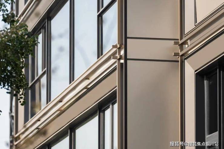独树一帜的公建化建筑立面,汲取苏派竹刻艺术元素,挑檐勾边的设计巧妙点缀,以月光银+香槟金+质感灰三种色彩搭配构建五面铝板,勾勒出“金镶玉”般美学质感,重塑板块人居封面。