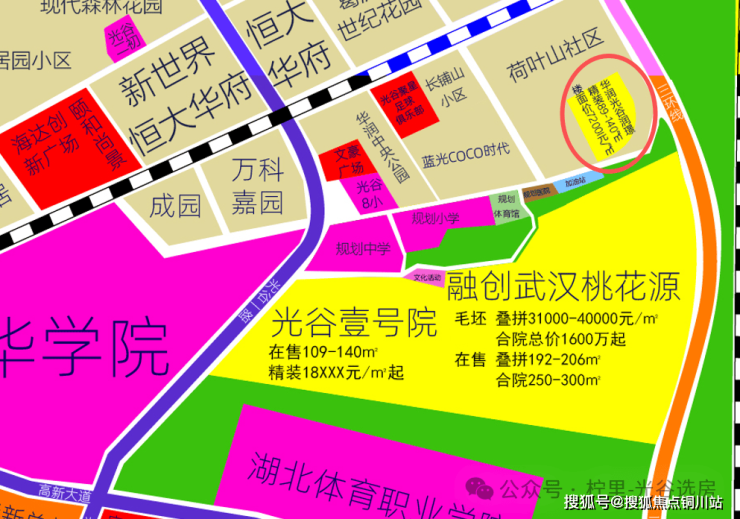 该项目地块位于东湖新技术开发区秦云路以东、荷叶山路以北,属于三环内大关山成熟生活板块。2025年12月,华润以楼面价7200 元 /㎡拿下该地块,总面积约5.6万方。