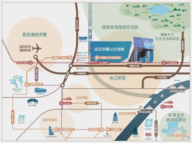 作为美好生活服务商,武汉城建集团以“生活因品质更美好”的价值理念,打造甘露山超级文旅综合体,按照产城融合理念,将“生产、生活、生态”规划统一,项目与区域、城市发展融为一体,项目北部为5A级木兰景区,今后,将打造木兰旅游集散中心,以甘露山为中心串联全区景区,加快建成国家全域旅游示范区。