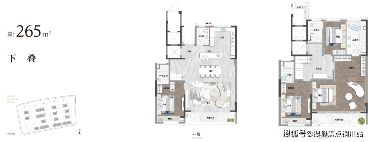 起步265㎡的奢阔尺度,将大平层的横向舒展与叠墅的立体空间完美融合。