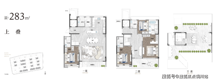 项目规划了建面约265-295㎡归心叠院及建面约186㎡低密真洋房。