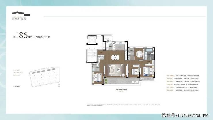 建面约186㎡的洋房户型,以"南向四开间+三卧朝南"的格局,重构改善型人居的空间哲学。