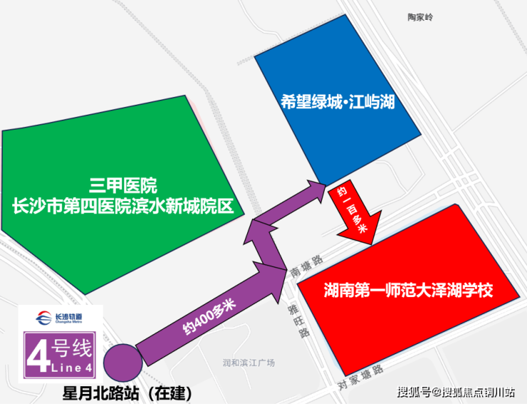 河西唯二公立三甲综合医院: 长沙市第四医院滨水新城院区,就在 项目周边,为健康护航。