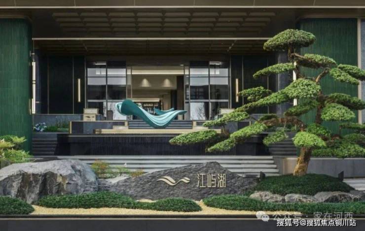 水景中央矗立着一尊飘逸灵动的江水雕塑,碧玉般的颜色十分吸睛。