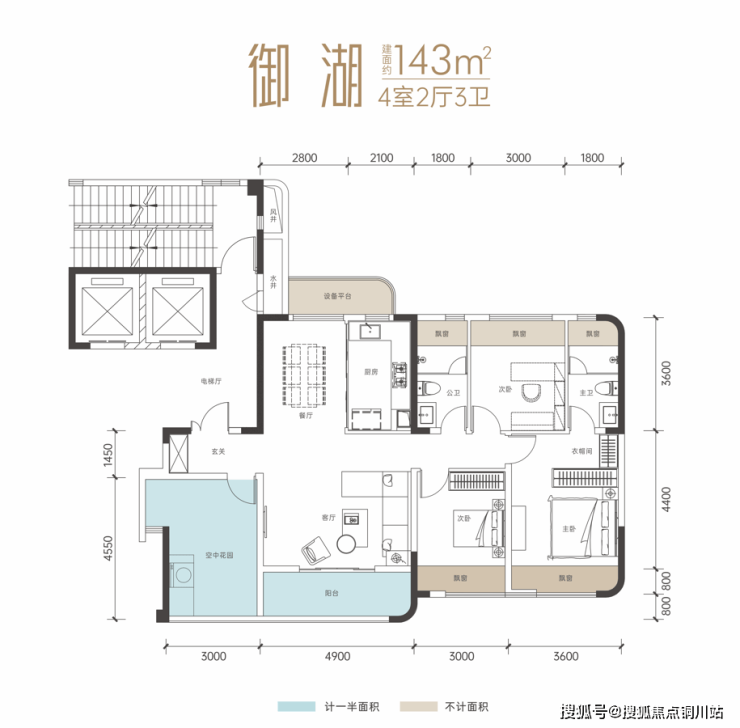 项目主推建面约143平户型: