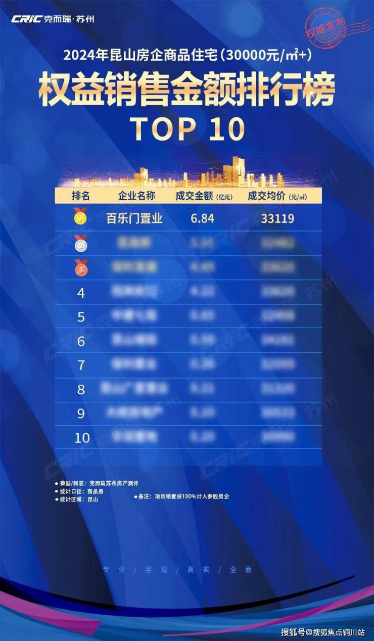 克而瑞数据统计,2024年,百乐门置业以6.84亿元的备案金额,斩获昆山房企商品住宅(单价3万级)权益销售金额排行榜冠军之位。这也意味着,仅仅凭借着中环玲珏庭,其开发房企百乐门置业便稳居房企榜第一。