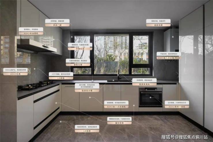在厨房空间,项目配备了厨电界的“爱马仕”ASKO厨电六件套(油烟机、三眼燃气灶、洗碗机、蒸烤一体机、两台嵌入式冰箱)以及德国高端水槽品牌BLANCO的花岗岩石墨水槽和可抽拉式水龙头等,以卓越品质、技术创新与健康呵护诠释高奢人居新体验。