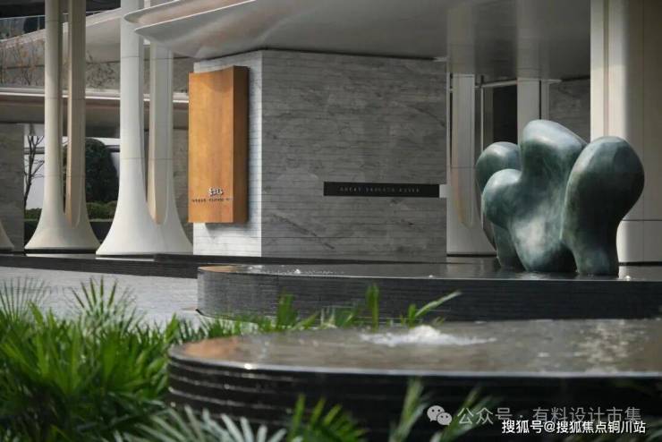 立面设计汲取长江流动水韵的灵感,以风帆造型营造出极具辨识度的塔冠设计。定制的鎏金腰线既以「鎏光织锦」雕琢高定美学立面,更借起伏曲线暗合奔涌江潮之势——将长江「云奔潮涌、勇立潮头」的进取精神,凝练为武汉瑞府的城市精神图腾。