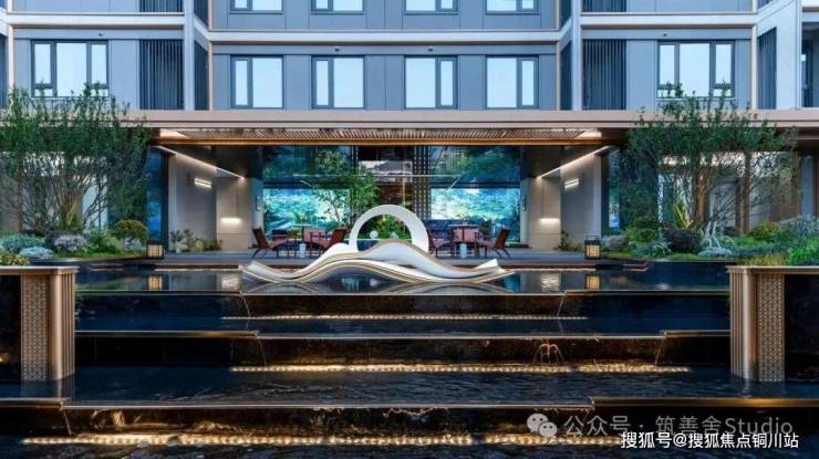 [江月潮生]雕塑宁静伫立于如镜水面上,绿意盎然的植物与花卉倒影与水波荡漾的星光交织成一幅璀璨画卷。置身其中,您将沐浴在时光流转与自然节律的和谐之中,打造了一方纯净的心灵净土,让您的身心在此空间得以彻底释放。汲取苏州园林经典借景艺术之精髓的[月影照壁],透过窗棂巧妙地将园外枫树引入视线,构筑了一幅自然而成的风景画。