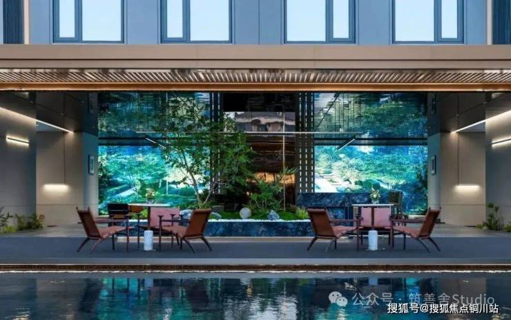 架空层泛会所,与无界连通三进院的[睦邻空间],是和自然亲密融合的社交天地。精心设计的会所式水吧位于核心区域,营造出星级酒店的尊贵会客体验。南北两侧采用架空设计,形成自然通风的开放会客空间。北侧休闲区向外延伸,与户外无缝衔接,让您在此悠享三进庭院的绿意盎然和花草摇曳,体验如度假般的户外风情。