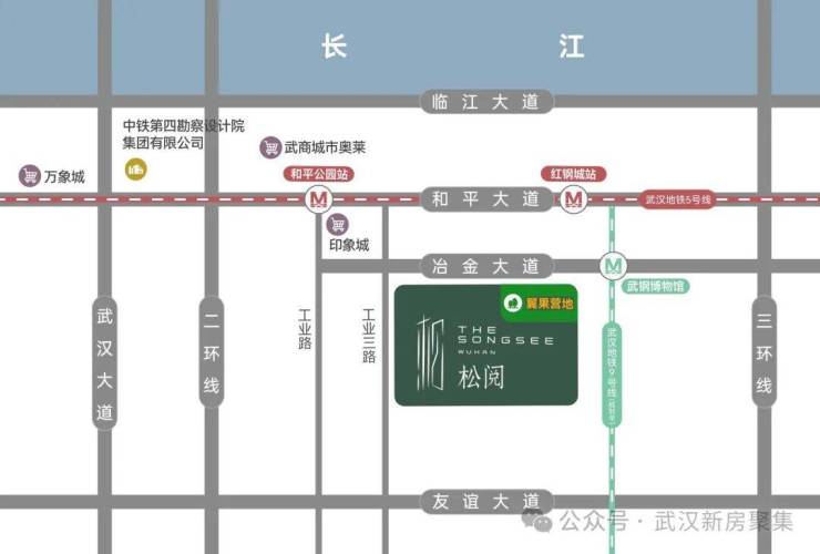 双轨:直线距离约300米至9号线(规划中)武钢博物馆站,直线距离约1公里至换乘之王地铁5号线和平公园站