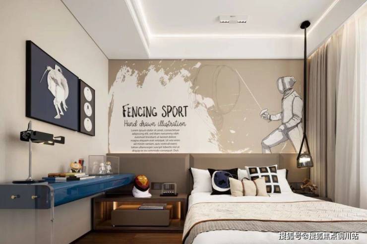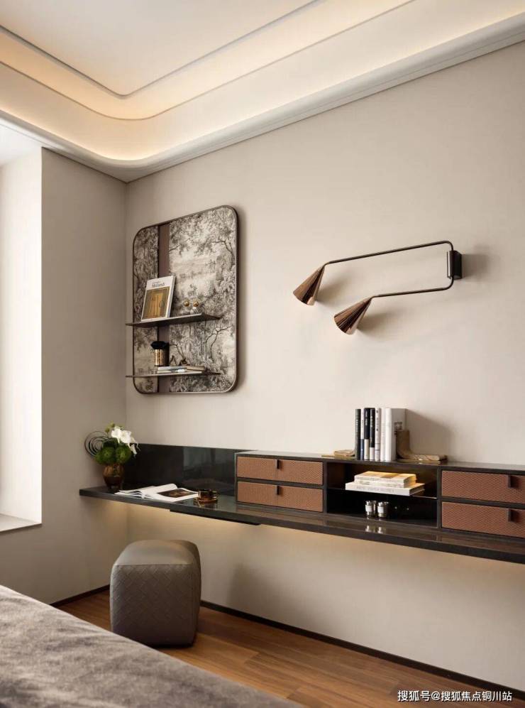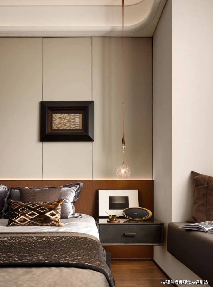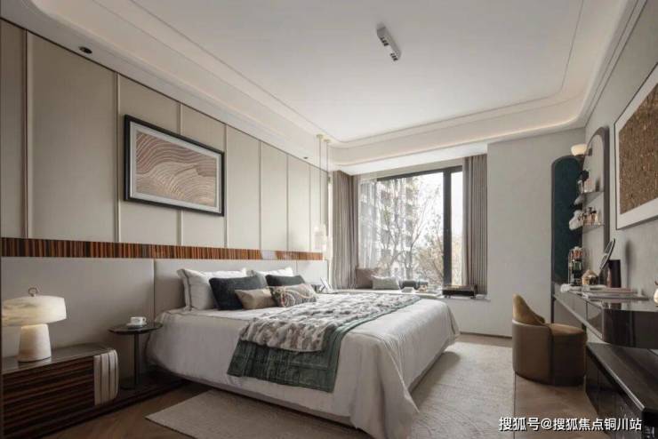 卧室设计注重私密与舒适,采用柔和的色调与高级面料,营造出宁静致远的休憩空间。床头背景墙以艺术壁纸或定制壁画装饰,每一幅作品都讲述着一个关于美的故事。定制的鎏金边框镜,不仅拓宽了视觉空间,也成为了房间内的一处亮点,彰显主人的独特品味。
