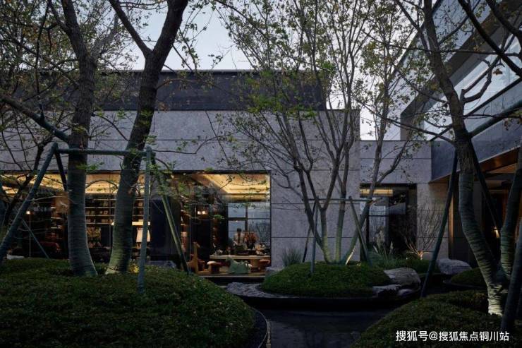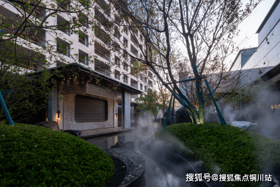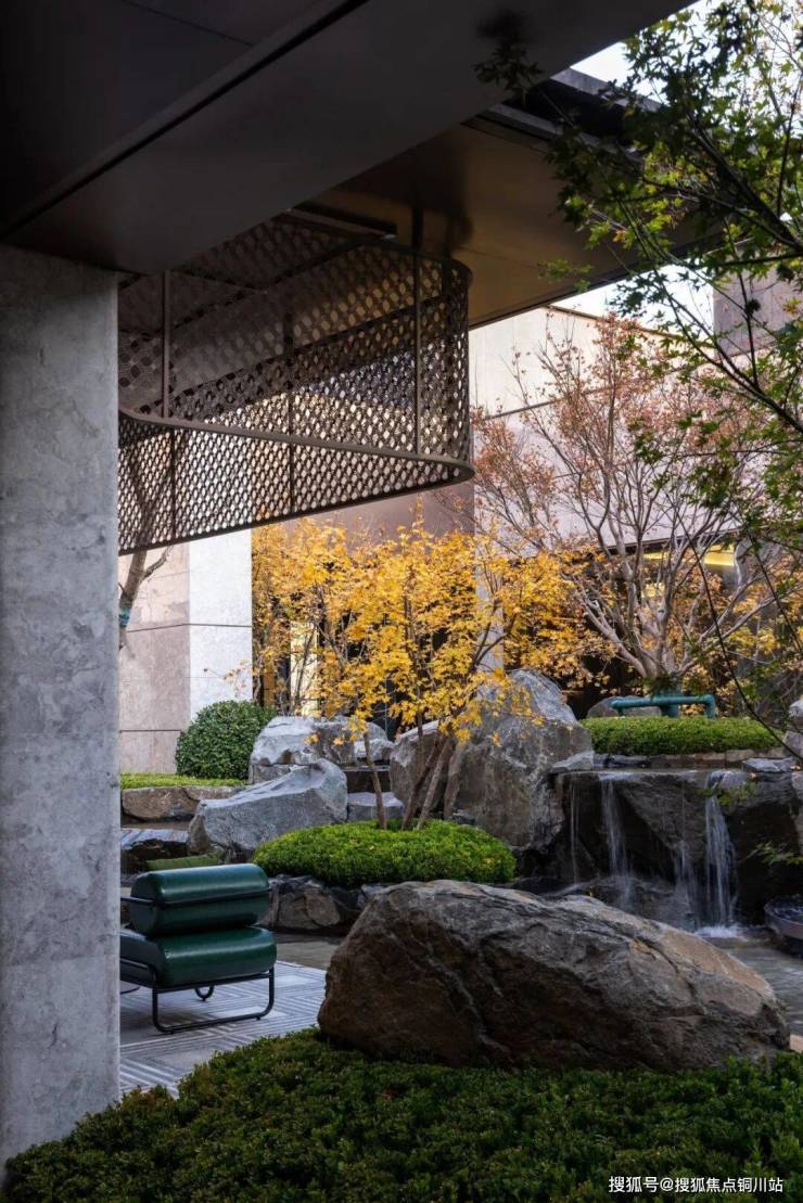 中庭是一方300㎡水院空间,山石水瀑,绿岛漂浮,迎面而来的度假感让人在沉浸中逐渐放松身心。