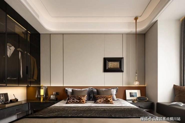 主卧270°转角飘窗设计,臻配奢华衣帽间,品位不凡私域。