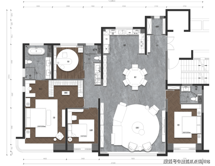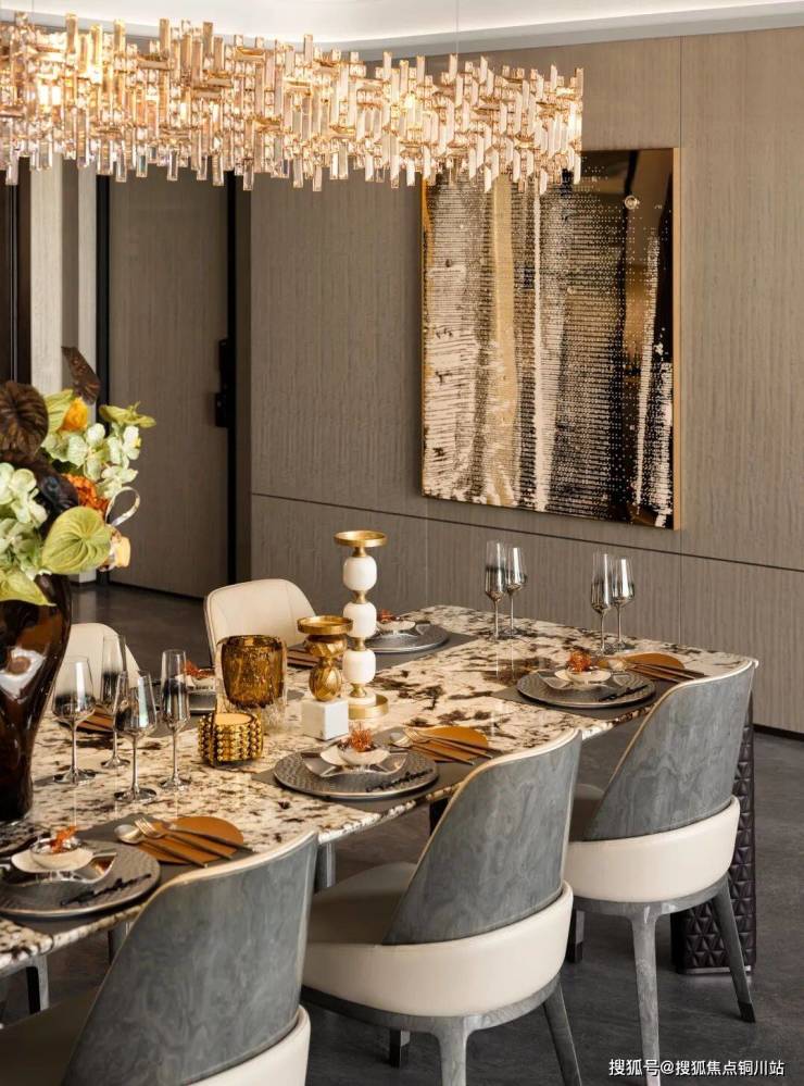 约50㎡餐客厅空间,豁然之境,营造奢华社交场域。