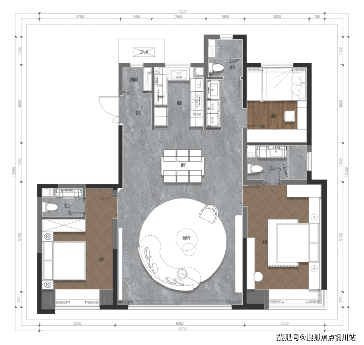 约13.2m南向面宽,客厅开间约6m,俯仰云端辽阔。