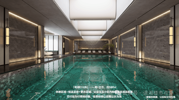 长沙首个海派度假会所和颂CLUB,配备恒温泳池、健身房、瑜伽室、私宴厅等,架空层泛会所打造儿童区、会客厅等多重功能空间