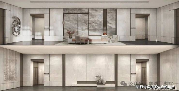石材装饰的奢侈感社区大堂,利用空间通透感,揽绿入户;精装双入户大堂——地下车库精装大堂,约4.5米首层精装大堂:由社区大堂到楼栋落客区,再到地下车库精装入户大堂,回家动线仪式感拉满。