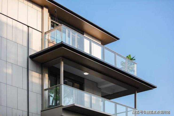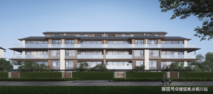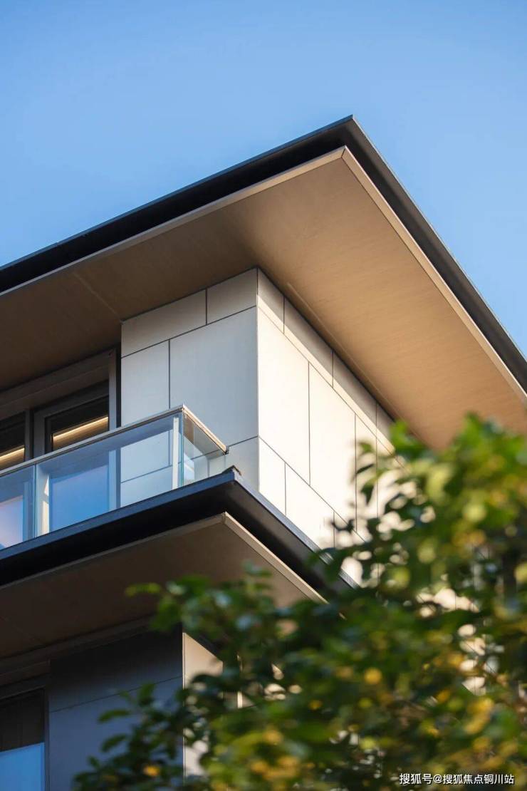 整个立面,铝板+仿瓷石板,辅以一体板,隔栅的新中式仿宋风格建筑视角,令人眼前一亮。