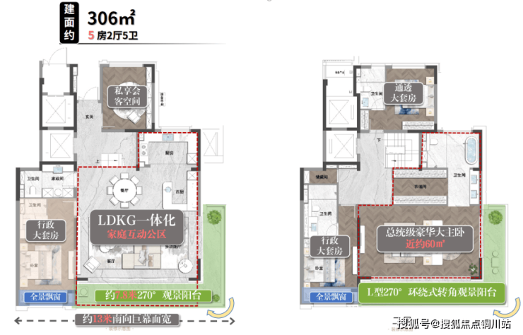 建面约306㎡的下叠户型,创新进行别墅面宽大平层化,还原「真别墅」该有的宽奢和享受。