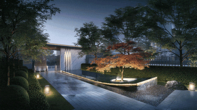 社区内部,整条中轴动线串联起多个景观组团,绿植层层叠立,高低错落,游走其内,可谓:一步一景一画卷,移步换景画中游。