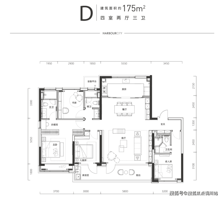 另一个打破房师傅预期的,是楼王的户型!7号楼王牌户型——建面约175平的套四三卫。