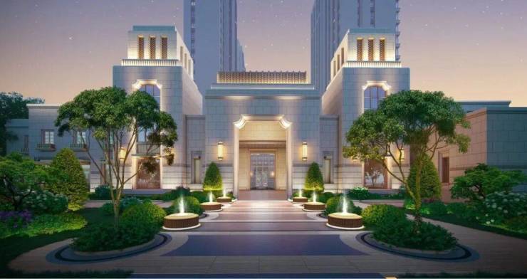气势磅礴的社区门头,一眼就是殿堂级的隽永艺术,就像是来到了上海外滩的华尔道夫酒店。