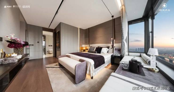 要说空间最震撼,还是约36㎡豪华主套,双台盆、浴缸、衣帽间的组合,甚至还有270°环幕观景飘窗。