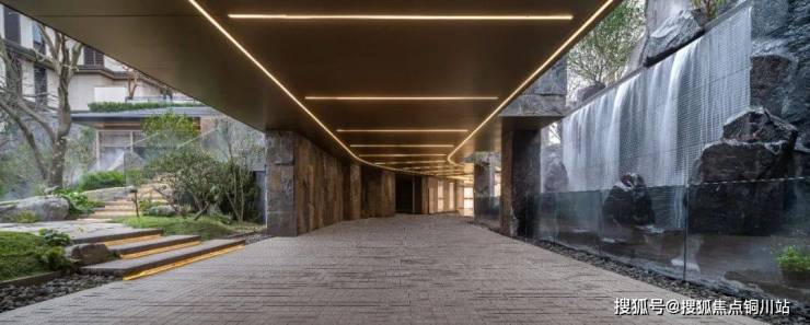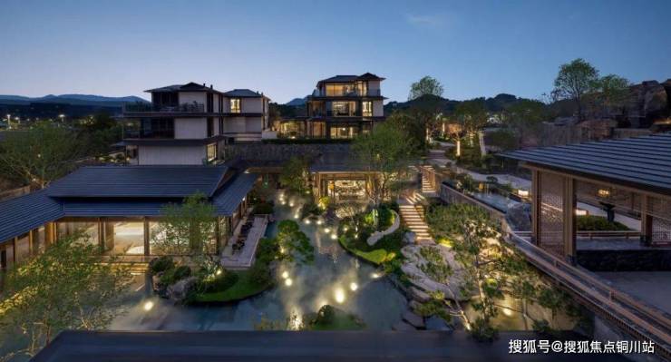 景观特色:项目背靠仁湖、依山而建,引千年仁湖水入中心水院,打造媲美雪窦山飞瀑的震撼视听效果;以宋代范宽名画《溪山行旅图》为底,打造 “寻溪七行” 之境。