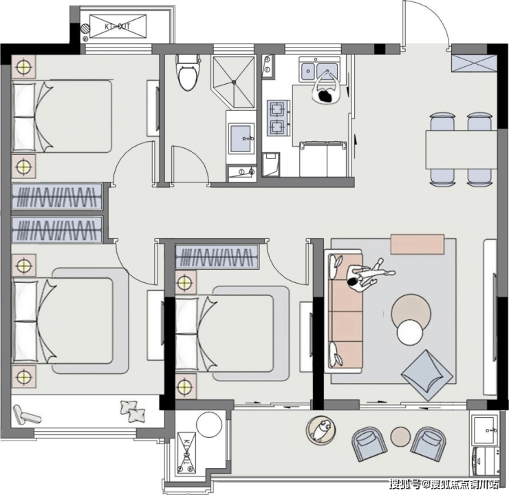 其中最典型的莫过于建面约89㎡三房,采用三开间朝南的经典布局方式,却又破除了传统89㎡户型空间局促,可拓展性差的缺点——