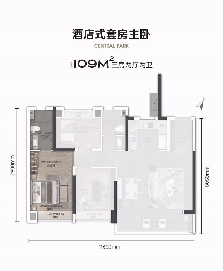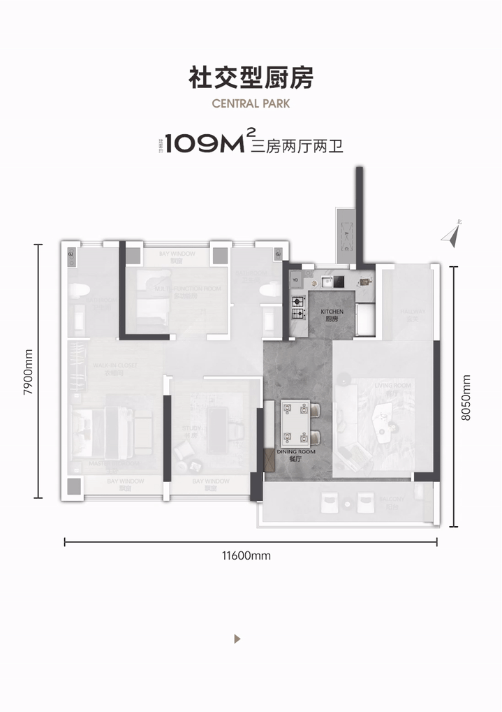 建面约109㎡的整体户型拓展面积更高,实用性和可塑性更强,性价比更高,给予您更大的使用空间、更幸福的居住体验。