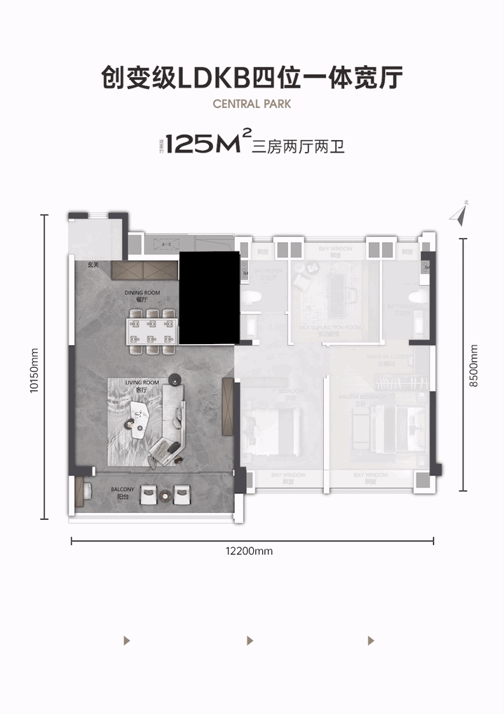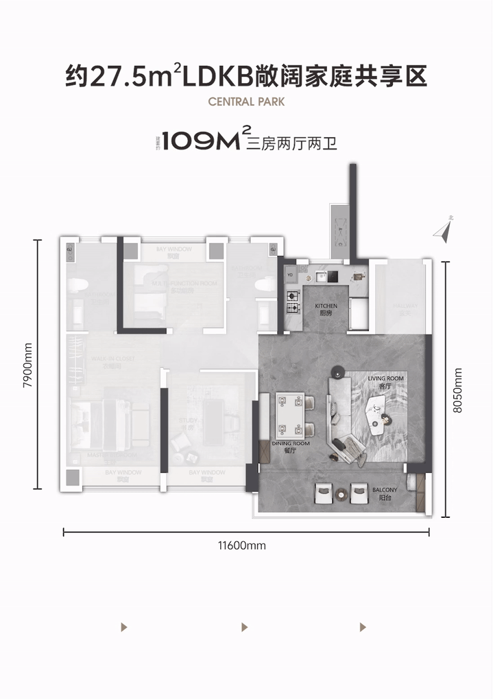 光谷中央公园7#建面约109㎡三房两厅两卫全能户型,年轻人置业的优质选择,兼具生活的功能性与舒适度,以教科书式布局盛装生活梦想。约5.5米大平层级面宽横厅,LDKB一体化设计,纵览自然美景。