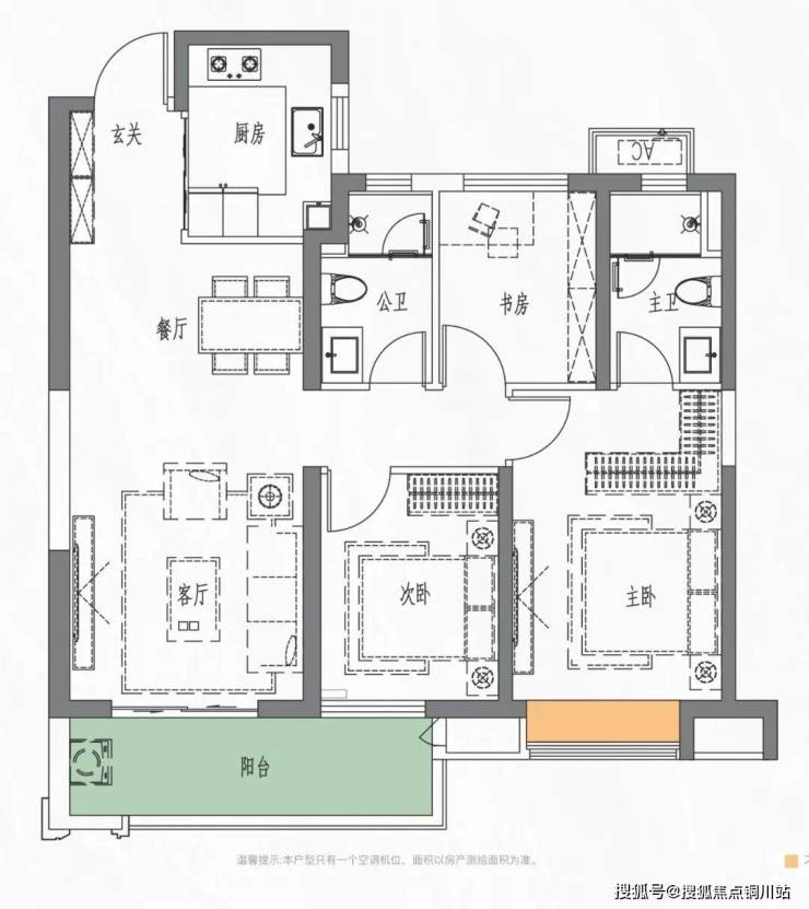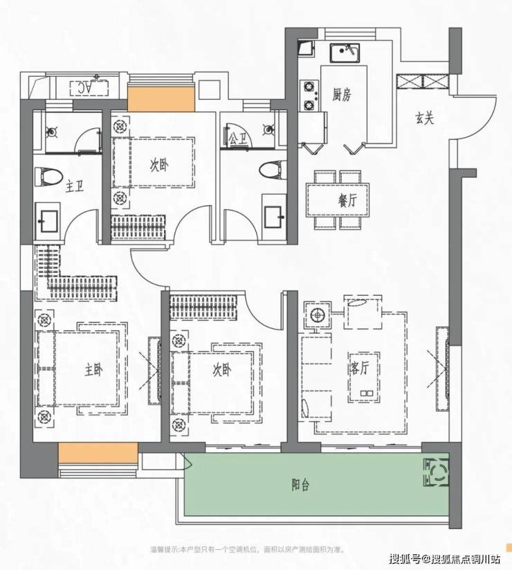 建面约114㎡户型示意图
