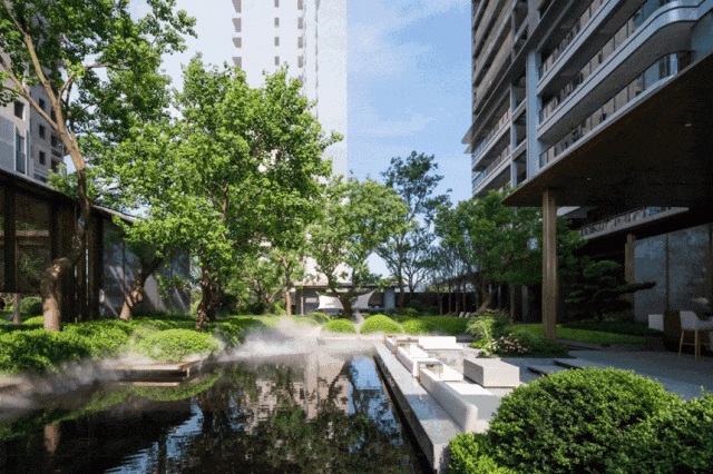 目前,凤起云城的部分实景已经提前开放,既有宛如凤鸟飞腾的挑高大门、泛会所式的架空层、约4.5米高的风雨连廊,以及景观园林和入户大堂等多维场景;也有开放式街区和里弄形态的梧桐里潮玩生活街区先行段。