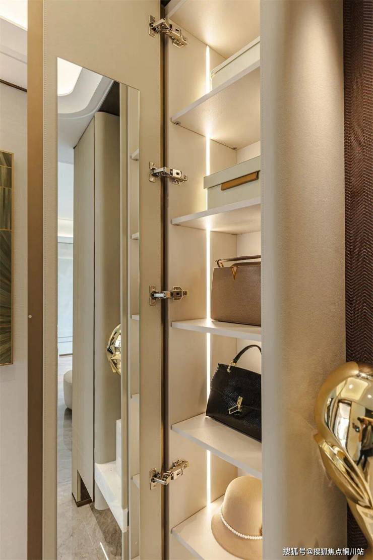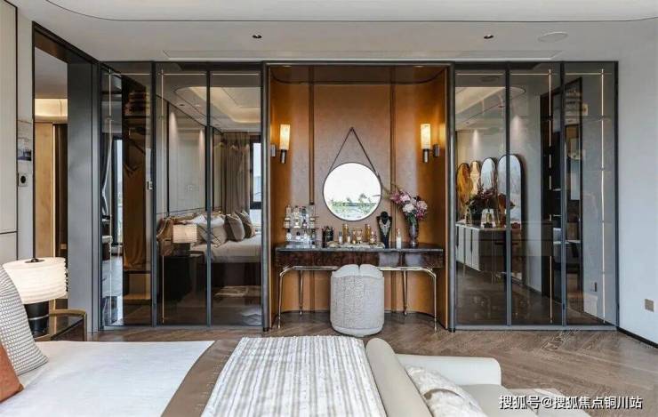 静雅里觅得自在的状态,这里既有传统优雅的气韵,又兼具国际视野的表达。铝框玻璃衣柜+精致的梳妆台,跳色搭配让视觉的冲击力入眼更入心,尽释沉稳高雅风尚。